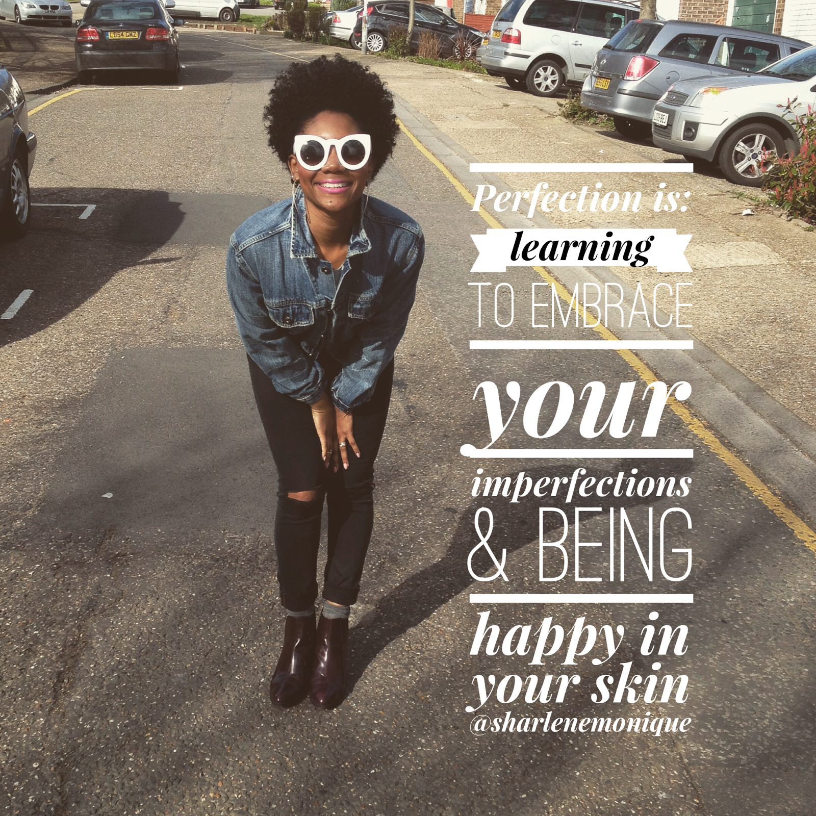 Within the interview, I was asked how my Caribbean heritage influenced my perception of beauty. When I began to think about it, I realized that so much of how we think and feel about ourselves is influenced by the people around us and the things we hear growing up. When I was little, I can remember thinking, ‘I don’t want to have a ‘picky head’. For those unsure it’s a Jamaican/Caribbean term for undesirable, dry, rough hair. Those with naturally silky soft hair were seen as more favorable, but this is a whole other blog for a different day. The fact that I no longer chemically straighten my hair is a miracle because in my school days being natural was not an option for me. These things affect us and shape the way we see ourselves. It’s been a long journey for me to get to the place I am now where I actually do love to be in MY own skin. What is perfection anyway? Who gets to decide what’s perfect or not?